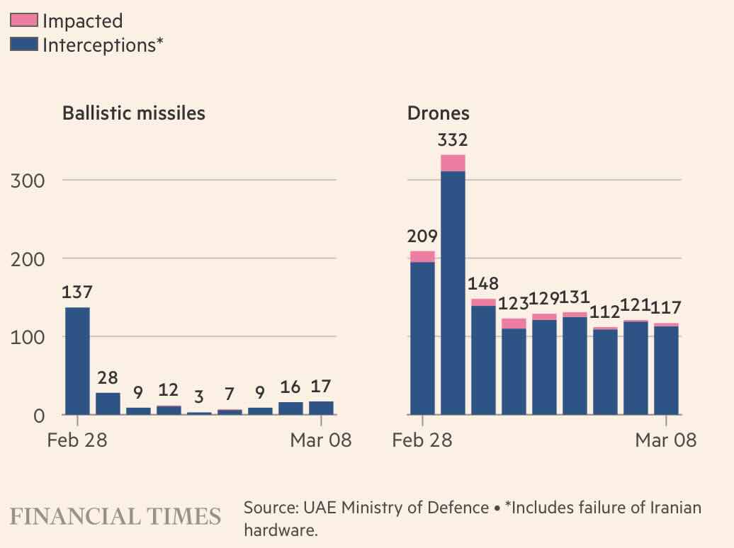 The largest part of that practical support, without doubt, has come from the exemplary UAE military who have done a spectacular job of taking down so many of these projectiles (see below) - indeed the greatest risk of personal injury has come from falling missile debris, not the missiles themselves. We are grateful to the UAE military for keeping our people safe.