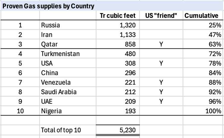 A simple look at proven oil and gas reserves (see below) shows that 3 countries control over 50% of the world's proven oil and gas reserves. I have overlaid (again very simplisitically), US friends or foes and how easy it is to extract the oil.